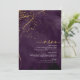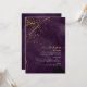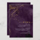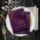 Um fundo de aquarela em tons de roxo de ameixa é tocado por um abstrato de linhas de ouro finas e efeitos de iluminação reluzentes para criar as peças desta bela suíte de casamento. O cartão 'Menu' do casamento mostrado aqui também apresenta uma caligrafia elegante e um layout fora do centro para atração visual. Adicione facilmente suas próprias iniciais, data do casamento e seleções de menu usando a modelo fornecida. Procure ID867 para ver outras peças e opções de cores para este conjunto.