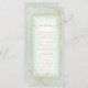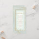 Um fundo de aquarela em tons de verde-sábio tocado por um abstrato de linhas de ouro finas e efeitos de iluminação reluzentes para criar as peças desta bela suíte de casamento. O cartão 'Menu' do casamento mostrado aqui também apresenta elegantes quadros de caligrafia e gradiente para segurar seu texto tanto na frente quanto no verso. Adicione facilmente suas próprias iniciais, data do casamento e seleções de menu usando a modelo fornecida. Procure ID867 para ver outras peças e opções de cores para este conjunto.