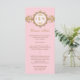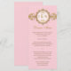 Um cartão de menu que tira sua influência da era Art Deco. Uma banda ouro ornamentado, parecida com um relógio vitoriano, apresenta um medalhão segurando o monograma do casal. O fundo rosa pálido impressão um padrão sutil como uma marca d'água. Adicione ou reduza o espaço entre a primeira e a última iniciais para equilibrar com o monograma central. Adicione um menu personalizado abaixo. Um olhar clássico para estabelecer o clima para qualquer casamento. Disponível em cores alternativas com produtos correspondentes.
