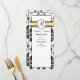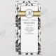 Cartão de cardápio de casamento elegante e sofisticado em cores de ouro preto e branco e metálico para sua recepção de casamento. Modelo do Menu Casamento com cor damasco de colheita branca e preta e cor de sotaque dourada que você pode personalizar com seu monograma, seus nomes e itens do menu de casamento. Use a parte traseira para adicionar suas informações sobre a programação da recepção de casamento e a festa de casamento. Por Elke Clarke ©2012. Gráficos licenciados.