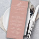 Cartão personalizado de cardápio de casamento. Simples design clássico e elegante em rosa de ouro para coordenar com as cores do seu casamento (procure na minha loja cores do alternativo ou clique em "personalizar mais" e mude a cor de fundo para o fato). O modelo está pronto para você adicionar os nomes da noiva e noiva, a data do casamento e o seu menu.