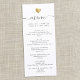 Este cardápio chic do casamento brilha com simplicidade. Tipografia moderna, caligrafia deslumbrante acentuada por um coração bonito em ouro (impresso), esta suite é mínima e elegante.