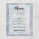 Os pequenos folhetos de papel para barato de 4,5" x 5,6" apresentam um lindo padrão empoeirado de mármore azul a branco com veias douradas e os detalhes do menu em caracteres quicos. Impresso no estoque de cartão semirbrilhante de 80 lb. Certifique-se de verificar seu pedido duas vezes antes de adicioná-lo ao seu carrinho, pois o que você vê na tela é o que será impresso. O Serviço de Design ao Vivo pode ajudá-lo com seu layout de design, se necessário. CORRESPONDENDO a itens na nossa loja.