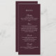Traga um toque refinado para sua recepção com este cardápio de casamento burgundy, projetado em uma estética de dinheiro eterno velho. O fundo tinto-de-vinho com tipografia elegante o torna perfeito para o outono e casamentos no inverno, acrescentando um olhar luxuoso e sofisticado às suas mesas jantas. Uma bela maneira de guiar os convidados através dos cursos da noite em estilo.