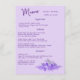 Menu de Casamento de Floral de Aquarela elegante e minimalista de lavanda