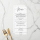 Menu folha única, tamanho: 10,16 x 22,86 cm, papel: Semi-brilho Básico