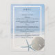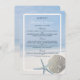 Estes cartões são perfeitos para qualquer casal planejando um casamento elegante na praia. A design apresenta um dólar de areia cremoso e um peixe-estrela azul-claro com um fundo azul esmaecido de praia. A design está acabada com uma delicada borda de areia. O design simples e fresco pode ser personalizado para se adequar ao seu evento especial e será o menu perfeito para qualquer festa temática na praia, incluindo chás de panela, noivados, chás de casamento, festas de aniversário e muito, muito mais.