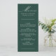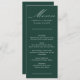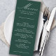 Cartão personalizado de cardápio de casamento. Design elegante e elegante verde-esmeralda simples para se coordenar com as cores do seu casamento (procure na minha loja cores do alternativo ou clique em "personalizar mais" e mude a cor de fundo para o fato). O modelo está pronto para você adicionar os nomes da noiva e noiva, a data do casamento e o seu menu.