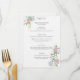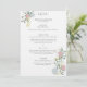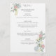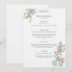 Este menu de casamento requintado é adornado com um motivo floral elegante com rosas delicadas e hortênsias aninhadas entre folhas verdes exuberantes. A fonte clássica e as fontes serifadas aumentam ainda mais a sofisticação geral.
