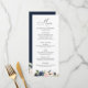 menu de casamento floral com marinho e pincel