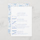 Melhore sua porcelana azul eterno Chinoiserie inspirou a celebração do casamento com um cartão de menu elegante. Mostrando um padrão delicado de flores brancas e azuis-claras, este design refinado é complementado por um toque personalizado — a noiva e o monograma nobre no verso, criando um elemento memorável e distintivo para seu dia especial.