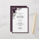 Crie a configuração perfeita de recepção com este design de menu de 5,5 x 8,5" com um buquê de flores roxas ricas em ameixa, lavandas e madeiras e verde botânico, e é bordado em roxo de ameixa. Personalize seus detalhes acentuados com uma bela caligrafia feita à mão. Perfeito para, mas não limitado a, aquele casamento no quintal e no jardim. Parte de um conjunto correspondente. Consulte a coleção de cheios aqui: https://www.zazzle.com/collections/plum_purple_floral_watercolor_calligraphy-119555439716895357 Entre em contato com o designer para obter produtos correspondentes. Copyright Elegant Invites, todos os direitos reservados.