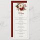 Adicione o encanto sazonal à sua recepção com este menu de casamento no inverno. Projetado com florais vermelhos e marfim festivos, pinheiros, e caligrafia elegante, é perfeito para casamentos de Natal rústicos. Uma bela maneira de mostrar seus cursos com calor de férias.