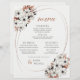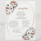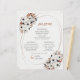 Estes menus de folha de papel de janto elegante e elegante, de 8,5" x 11", apresentam um design floral preto e ferrugem com a inscrição de cinza escura sobre um fundo branco de osso com o cabeçalho, "Menu" e espaços reservados para 2 aperitivos, 2 entradas, 2 lados e 2 sobremesas.
