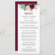Moderno Elegante Watercolor Floral da Borgonha, Menu de Casamento Verde inclui peonias, folhas de eucalipto e outros belos verdes.