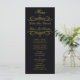 Este cartão de cardápio de casamento pode ser personalizado para se adequar aos detalhes da sua recepção de casamento. O coração Dourado floresce e monograma em decoração negra deste cartão. Parte da nossa legante suíte de convite de casamento Black & Dourado Heart Flourish projetada pela artista Susan Coffey.