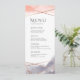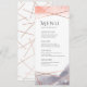 Menu de casamento moderno e chique, com linhas geométricas douradas e brilho falso em rosa pastel e fundo de aquarela azul poeirento, tendência para festa de casamento de primavera.