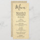 Menu folha única, tamanho: 10,16 x 22,86 cm, papel: Semi-brilho Básico