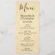 Dourado Glitter e Menu Sparkle Wedding. Este moderno Menu de Casamento de Script pode ser personalizado para incluir os nomes do noivo e do noivo, a data do casamento e as opções do menu janto de casamento.