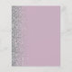 A borda esquerda deste elegante menu de casamento moderno apresenta uma borda cintilante de prata. O texto personalizável combina o script branco de escrita manual e as fontes em um fundo lilático empoeirado. O verso apresenta um lilás empoeirado e design prateado correspondentes.