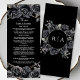 Jante no estilo romântico escuro com o nosso "Menu de Casamento Gótico Preto Negro Preto!" Imprima seus convidados com um menu que reflita seu estilo único e defina o tom para seu casamento gótico. Abrace a atmosfera escura e romântica do seu dia especial, belamente retratado nesta design de menu. Adapte o menu às suas delícias culinárias, assegurando que os seus convidados desfrutem de uma experiência memorável de jantar. Melhore o seu decor de casamento com este cardápio inspirado em gótica que adiciona um toque de encanto a cada lugar!