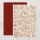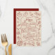 Melhore o seu casamento com este cartão de menu ilustrado em vermelho rústico e creme. Com ícones de comida desenhados à mão e um design clássico, este cartão de menu personalizável adiciona um toque charmoso ao seu dia especial. Perfeito para mostrar o seu menu cuidadosamente selecionado, este cartão é elegante e funcional, tornando-se uma lembrança bonita para os seus convidados. Ideal para casamentos, aniversários ou qualquer evento sofisticado, este cartão de menu combina estilo com praticidade.