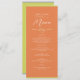 Apresentando nosso menu minimalista de casamento, uma fusão harmoniosa da sofisticação moderna e cores vibrantes. Sol-alaranjado brilhante e sotaques verdes frescos infundem o design com energia e frescura. Adorado com um coração romântico de corda dourada e com uma escrita simples, este menu mostra elegantemente os prazeres culinários à espera dos seus convidados. Ele define o tom para uma experiência memorável de jantar enquanto adiciona um toque de romance à sua decoração de recepção.