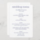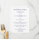 Menu de casamento moderno branco e azul-marinho com texto personalizável