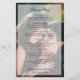Menu moderno de casamento de fotos com uma sobreposição e seu menu em texto preto. O cabeçalho e seus nomes estão em um roteiro elegante. Uma design de chic e na moda que se coordena com qualquer estilo de casamento. Esses menus baratos de casamento são impressos em folhas de papel para uma opção econômica.