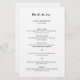 Menu de casamento moderno com um design simples com "menu" em uma tipografia de script de estilo rústico. Todos os elementos de design estão em preto-e-branco e podem ser alterados na ferramenta de edição de design. Este menu elegante com um layout minimalista é excelente para qualquer estilo de casamento.