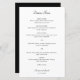 Simples menu de casamento com um design mínimo em preto e branco com o cabeçalho e seus nomes em uma fonte elegante. As fontes e a parte traseira podem ser alteradas para qualquer cor desejada, clicando no botão personalizar. Um design básico e simples que ainda aparece como chic. Esses menus modernos de casamento são excelente de um casal de estilo minimalista e são impressos em folhas de papel para uma opção econômica.