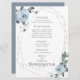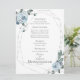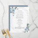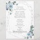 Menu Casamento de Aquarela | rosas de cor azul-poeirenta rodeiam uma armação prateada do tipo terrário geométrico com verde-salva. O reverso é um azul empoeirado complementar. Personalizar texto, estilo de fonte, cor e tamanho. Arte original criada para o BarefootBride™ por © WhimsicalArtwork™ - Esta é parte de um Conjunto completo de Artes de Casamento, chá de fraldas e outros artigos de papelaria para eventos semelhantes.