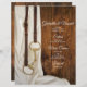 Personalize o Menu de Casamento Ocidental do País Chic White Satin e Horse Bit com os nomes da noiva e do noivo, localização do local e detalhes da refeição que você servirá no seu almoço de chá de panela, no mesmo período de classe, com tema de rancho, no janto de recepção de casamentos ou no brunch de posto de celeiro. Este encantador menu personalizado do casamento equino apresenta uma fotografia escura de cebola branca, colar pérolas, pedras de cavalo e rédeas de couro com um fundo de madeira de cascata castanha.