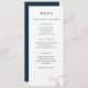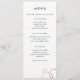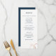 O texto limpo e moderno é facilmente personalizado neste formato chic, magro, menu de casamento. Azul e branco marinho se sente sofisticado e fresco quando acentuado com uma folha de rosa de ouro falso de anéis de casamento encravados. Para um toque especial extra, adicione sua foto favorita do noivado no verso usando as opções "personalizar".
