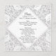 Menu recepção de casamento quadrado de chic, com gráficos de aparência fina. Uma área de texto em forma de diamante, no meio, texto preto pronto para personalizar, para seu dia especial.