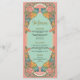 Menu de Casamento Pink Watercolor Art Nouveau