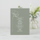 A arte da linha vermelha inspirou o texto "Menu" no topo com texto personalizado branco e fundo verde sábio com flor de arte da linha do solteiro à esquerda.