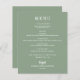 Um cartão de cardápio de barato e de janto de papel de valor em verde-sábio com suas escolhas de comida em letras brancas chic são perfeitos para uma recepção de casamento moderna, janto de ensaio de casamento, festa de aniversário ou qualquer evento especial com janto de sentar. Medidas de 4,5" x 5,6" (ou escolha entre 2 outros tamanhos) impressas em papel de 110 lb. Envelopes são uma taxa adicional.