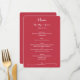 Menu de casamento vermelho personalizado com coração e texto personalizável