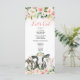 Menu de Chá de fraldas da fazenda Animal Floral Girl