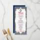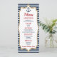 Este é um cardápio de comida. Criança do dia a dia mulher homem comida entree bebe aperitivo cardápio mesa náutica marinho âncora azul oceano mar vermelho ouro louro brunch ahoy