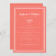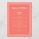Simples, minimalista e elegante Menu Casamento apresenta um design contemporâneo com uma dupla faixa branca e nítida dentro de um fundo LIVING CORAL. A formulação tradicional proporciona sofisticação eterno mas moderna. Personalize o design do casamento com os detalhes do menu em letras brancas e roteiro. A parte traseira da placa corresponde a CORAL.