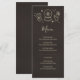 Este menu seria perfeito para uma festa de Halloween ou qualquer evento assustador. O design apresenta uma ilustração de uma palma, uma bola de cristal e um conjunto de cartas de tarô em um fundo preto cercado por luas e estrelas celestes.
