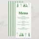 Adicione um toque de sofisticação esportiva ao seu evento especial com o nosso Menu Temático de Golfe. Perfeito para casamentos, festas ou jantares temáticos de golfe, este menu apresenta ilustrações elegantes em aquarela de tacos de golfe e campos, trazendo o charme do fairway para a sua experiência gastronômica.