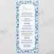 Design de Casamento do Menu Floral Branco e Azul Chintz, perfeito para combinar com a coleção na loja Wow Meow! Impressão traseiro incluído.