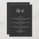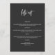 Este menu apresenta uma fonte de pincel escrita à mão e um design moderno. Edite com facilidade o texto *maioria* para atender às suas necessidades. Este cardápio faz a adição perfeita ao seu chá de fraldas contemporâneo, moderno ou boêmico, chá de panela, casamento, aposentadoria ou qualquer outro evento! Este menu de mesa apresenta uma combinação de cores escura e branca, mas todas as cores são 100% editáveis para corresponder ao seu estilo.