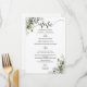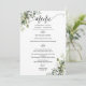 Este menu de evento de casamento apresenta um toque elegante com um roteiro caligráfico moderno e belo com texto regular acompanhado de um arranjo de folhas de folhagem de eucalipto com aquarelas. Vestir com sua própria imagem no fundo e uau seu convidado. Você pode personalizar o nome do casal, a data e o local Você só pode mudar a cor dos termos elegantes da caligrafia de "menu", "starter", "entrée" e "sobremesa". Você pode personalizar o menu como quiser.