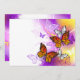 Laranja, borboletas monarcas detalhadas sobre luz, roxo, pitoresco, fundo pintado.