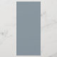 Cartões de Menu de Jantar de Mesa de Casamento elegantes e simples com folhas minimalistas em dusty blue 4x9" em caligrafia moderna. Você pode encontrar uma coleção de itens correspondentes e tamanho 5x7 em nossa loja VelvetPaperCo.
