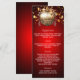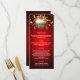 cartão de menu de jantar de festa de Natal. Personalize e adicione um nome/evento, data e o menu. Fundo vermelho, texto branco. Decorado com uma bolha dourada. Texto: Feliz Natal